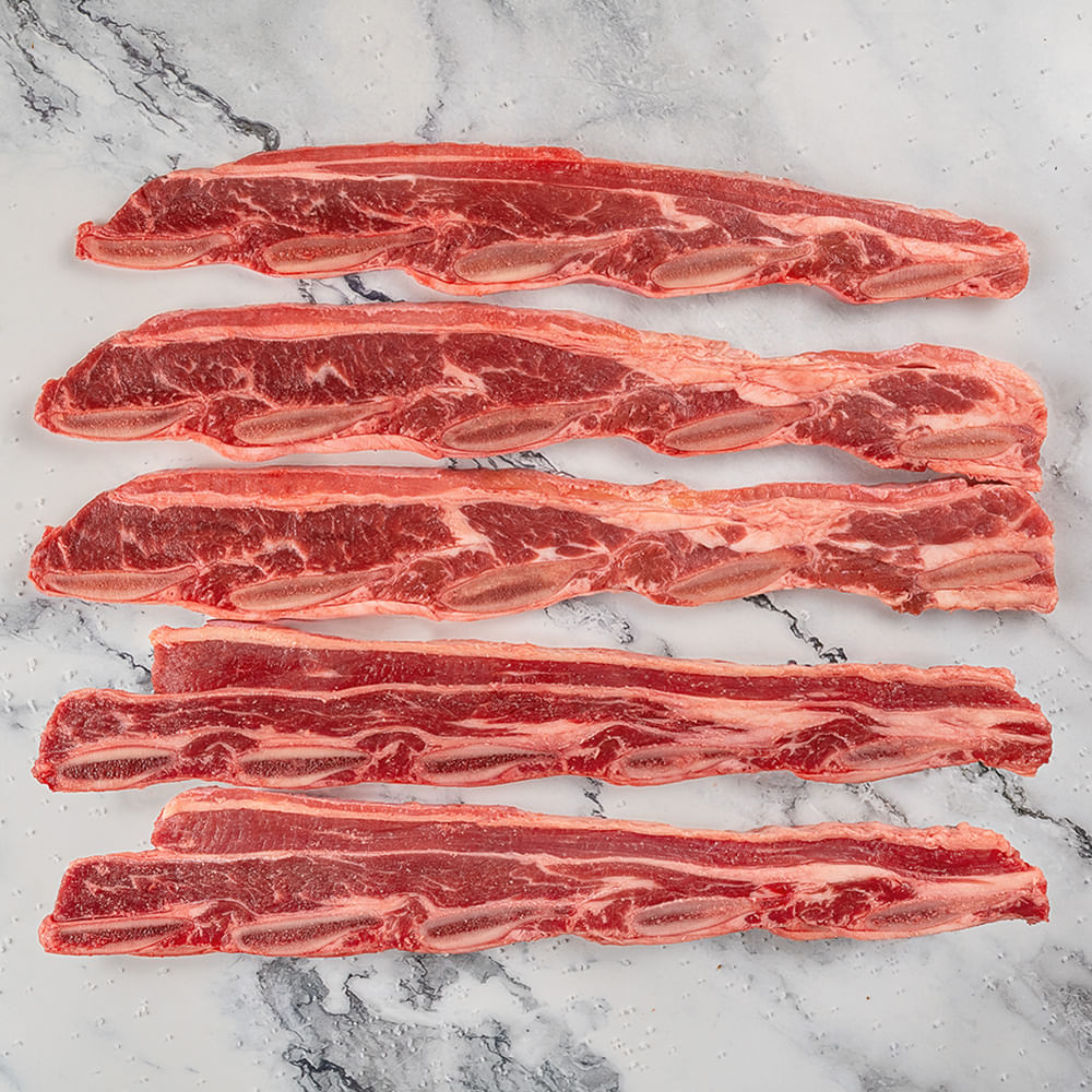 O assado de tiras finas é um corte conhecido por ter uma marmorização de gordura e uma textura suculenta, é frequentemente utilizada em churrascos e preparações grelhadas para realçar seu sabor robusto.