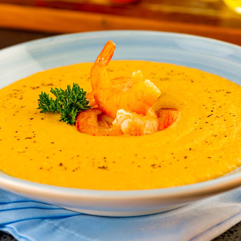 - Coloque a mistura em um liquidificador, adicione o caldo culinário de camarão descongelado e bata até obter um creme homogêneo. Acerte o sal se necessário e reserve.